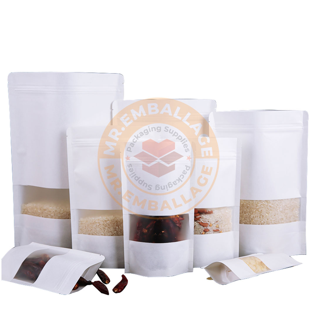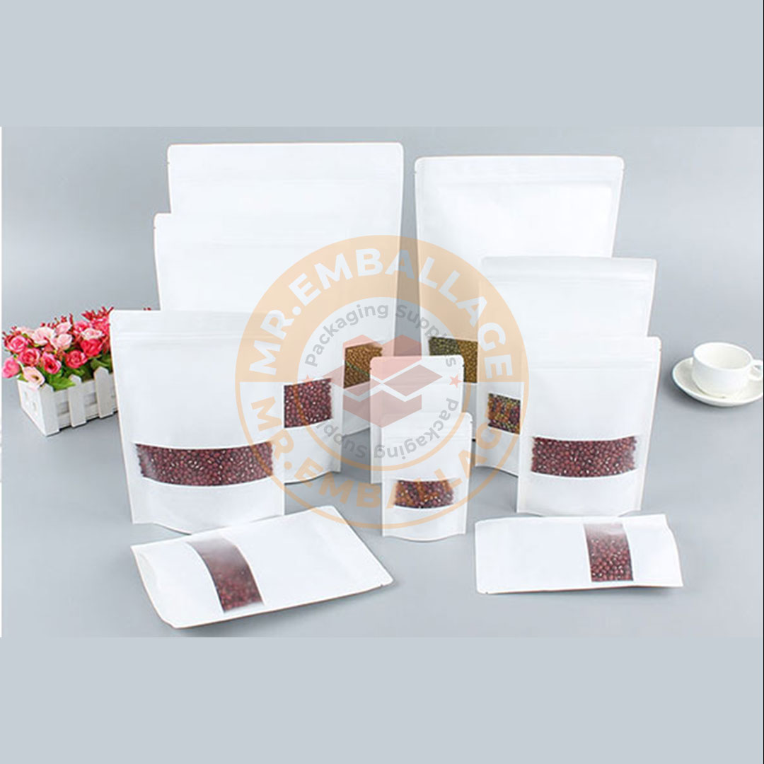 avec fermeture éclair, sachets de stockage, blanc, scellé, debout, thé kg, bonbons, fruits secs, refermable, piste, 100 pièces